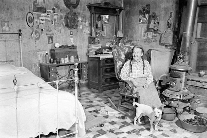 Женщина с собакой в своем доме в Техасе, 1938 год