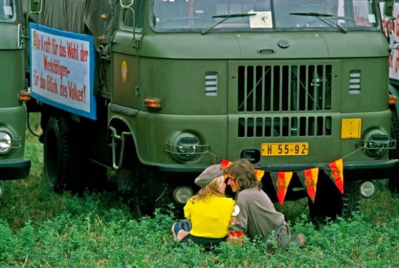 Молодая пара на фоне грузовика IFA W50. ГДР, 1974