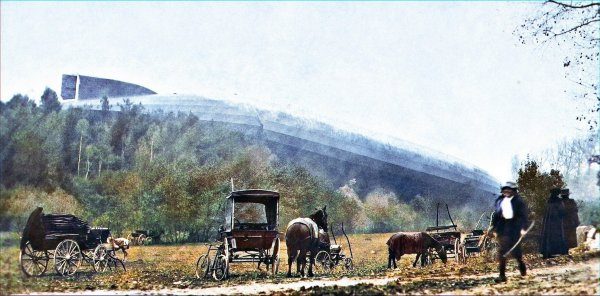 Немецкий дирижабль Zeppelin L49, сбитый во время Первой мировой войны в Бурбон–ле–Бен, Франция. 20 октября 1917 г.