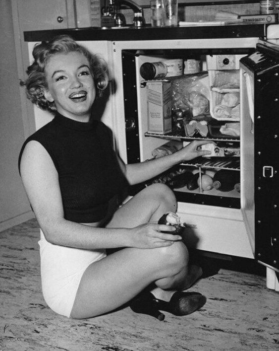 Мэрилин Монро и её холодильник в отеле Beverly Carlton, 1951 год