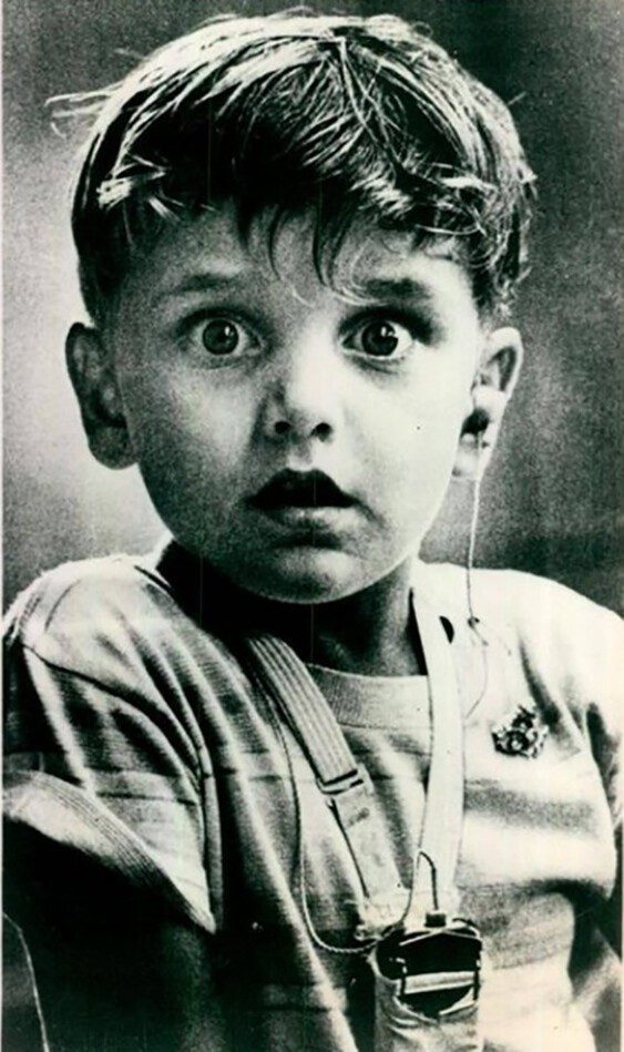 5-летний Гарольд Уиттлз впервые слышит с помощью слухового аппарата, 1963 год