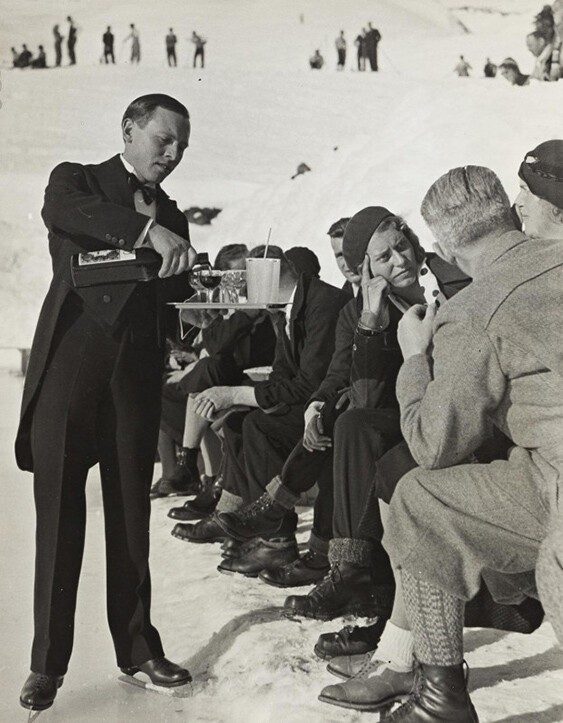 Официант на коньках в Санкт-Морице. Швейцария, 1932 год