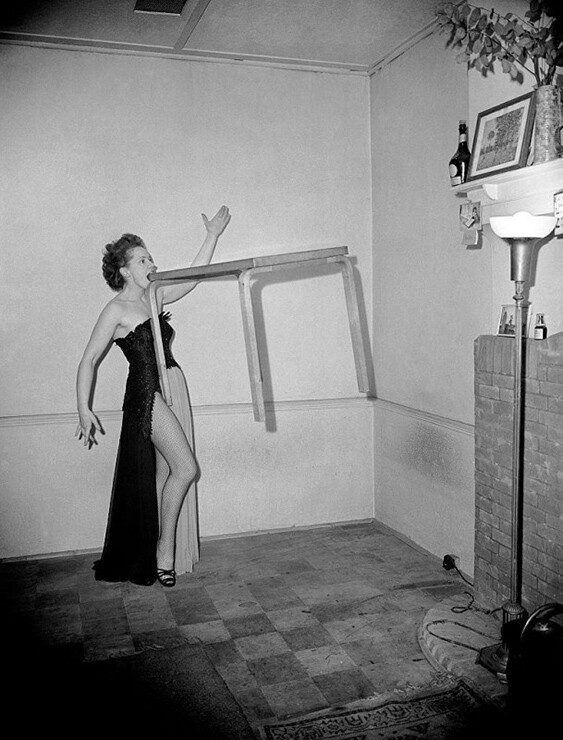 Британская исполнительница, рестлер, каскадер и силач Джоан Роудс. 1952 год
