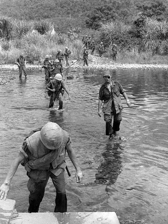 Израильский генерал Моше Даян с американскими войсками во Вьетнаме, 1966 год