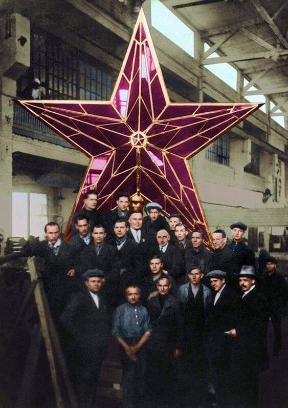 Рабочие, участвовавшие в создании рубиновых звёзд Кремля. СССР. 1937 год