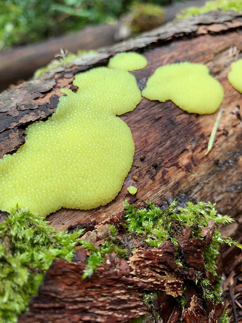 10. “Когда я увидела эту золотистую россыпь на поваленном дереве в одном из лесов Северного Ванкувера, то решила, что передо мною кладь яиц моли. Но вернувшись через пару дней обнаружила, что «яйца» превратились в необычного гриба.”