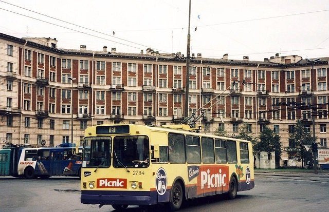 Троллейбус с рекламой шоколадного батончика Picnic. Санкт-Петербург, 1997 год.