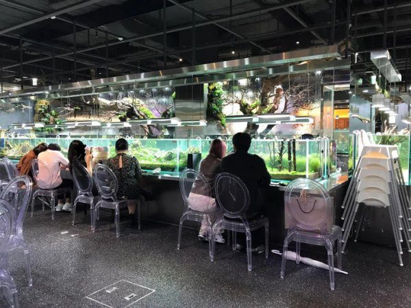 «Я пошел в кафе-аквариум в Сеуле. Можно сидеть прямо перед аквариумом»