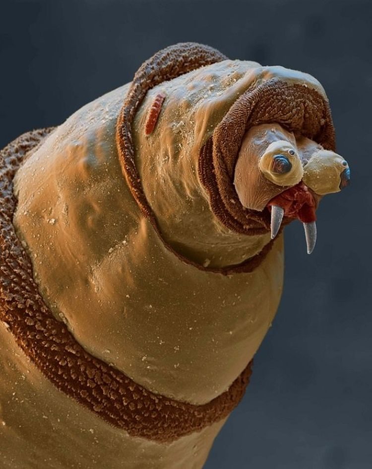 Личинка падальной мухи под микроскопом