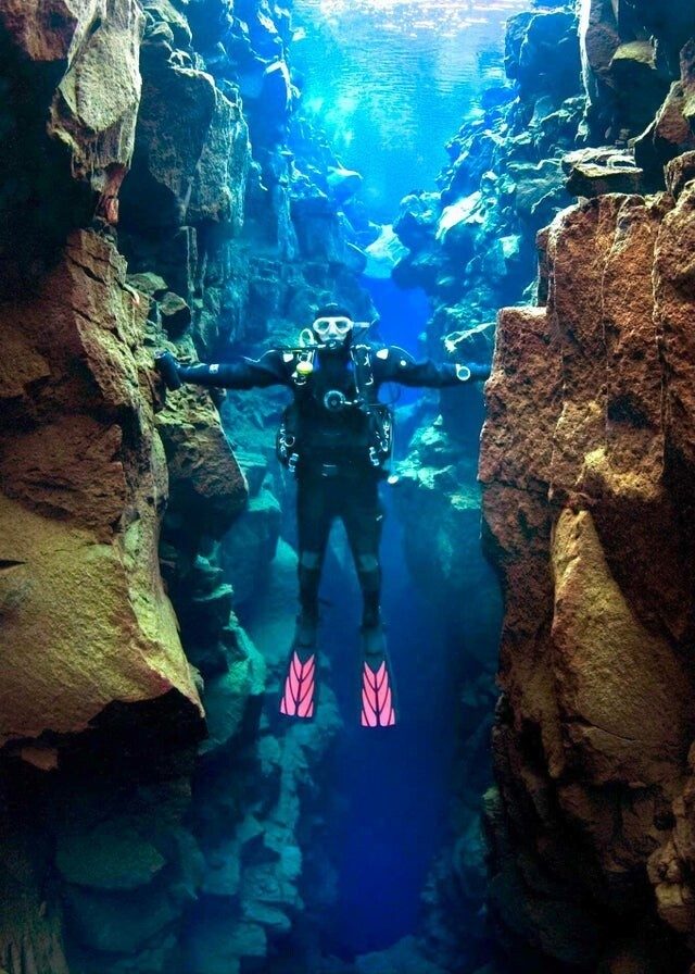Исландская трещина Сильфра — единственное место на земле, где можно прикоснуться к Северной Америке и Европе одновременно