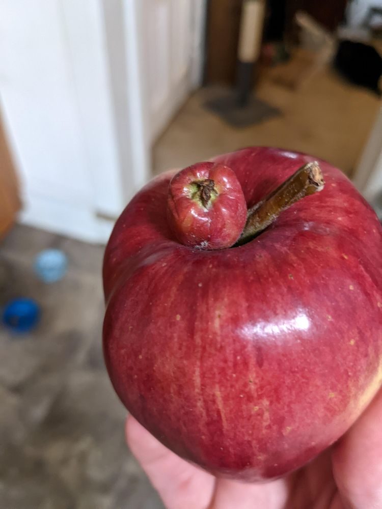 У этого яблока было крошечное яблоко, растущее из того же стебля