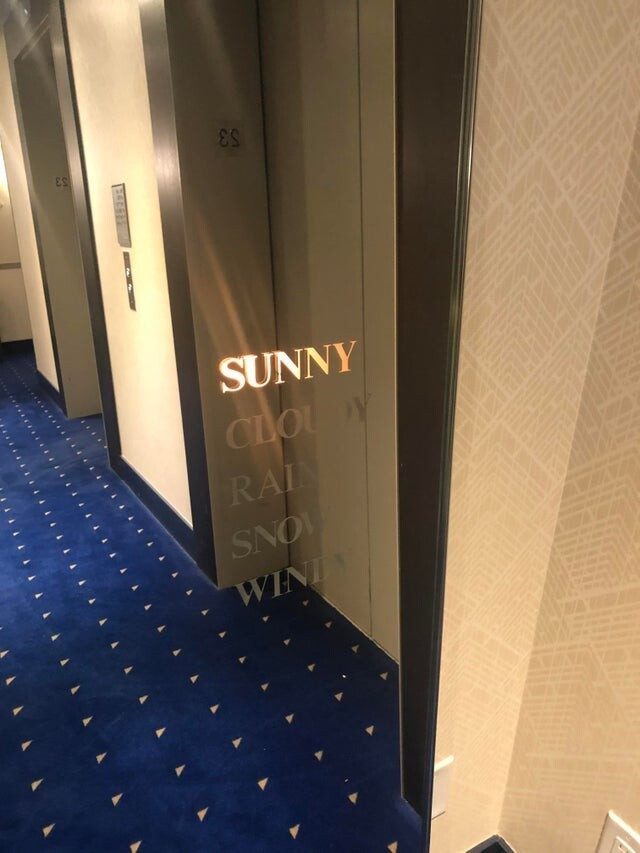Это зеркало в лифте показывает, какая погода сейчас на улице