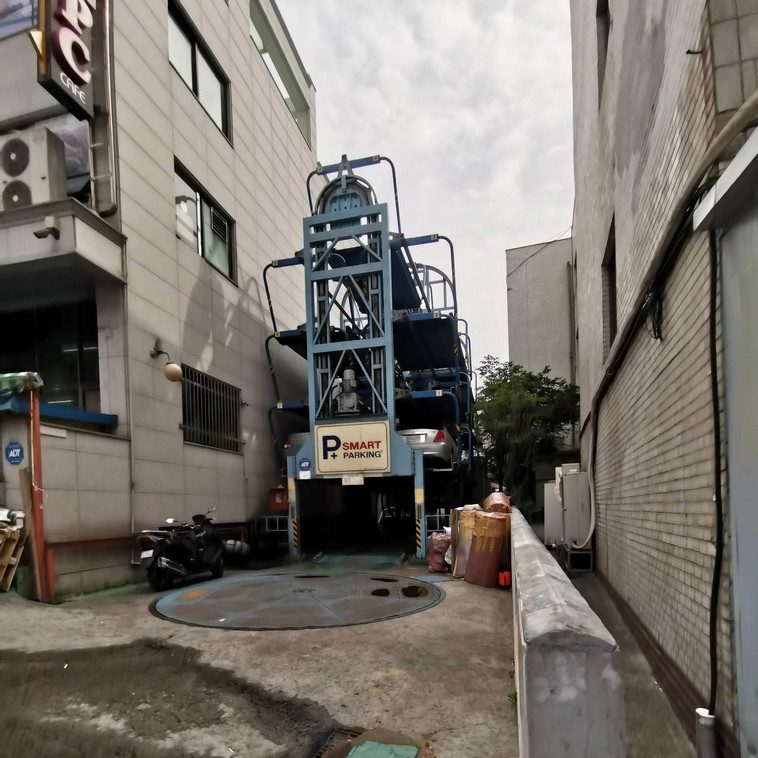 7. Мест для автомобилей тоже недостаточно. Корейцы придумывают всякие технологичные способы парковки.