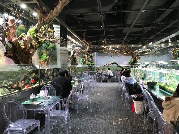 1. В Сеуле есть кафе, которое называется «Aqua Garden». Тут возле стен и столиков расставлены аквариумы с самыми разнообразными рыбками.