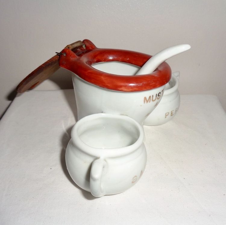 Вопрос: «Маленький бакелитовый контейнер в виде унитаза с ложкой, установленный на деревянной подставке. Что это такое?»