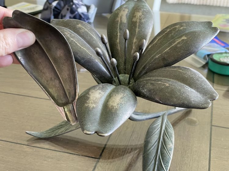 Вопрос: «Металлическая декоративная композиция в виде цветка со съемными лепестками длиной 25 см»