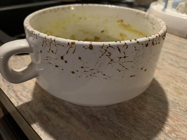 12. “Решил подогреть суп в микроволновке, а тарелка потрескалась и на ней остались такие вот интересные узоры. Наверное, в следующий раз я возьму другую посуду.”