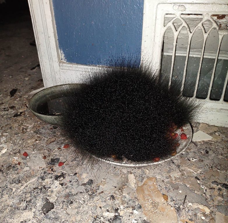 2. “Миска с сухим кошачьим кормом, залитая водой, несколько недель простояла в доме после пожара. Теперь мы все думаем, что же это за «дикобраз» в ней вырос?”