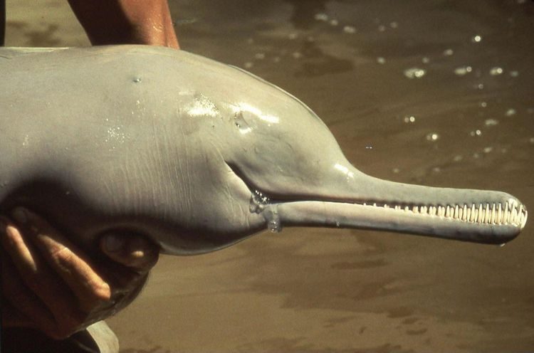 Гангский дельфин живет в чрезвычайно мутной воде и поэтому имеет крошечные, практически бесполезные глаза