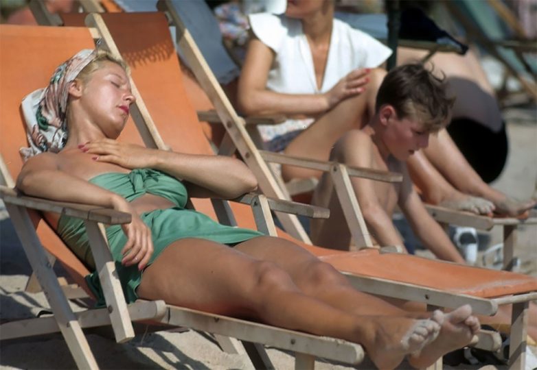 Архивные снимки отдыхающих на пляже в Каннах 1948 года