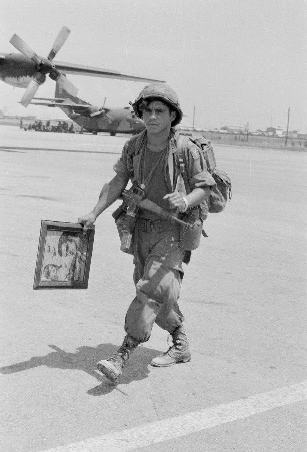27 июня 1972 года. Вьетнам, авиабаза Фу Бай. Дембель с картиной, на которой изображен он и его подруга.