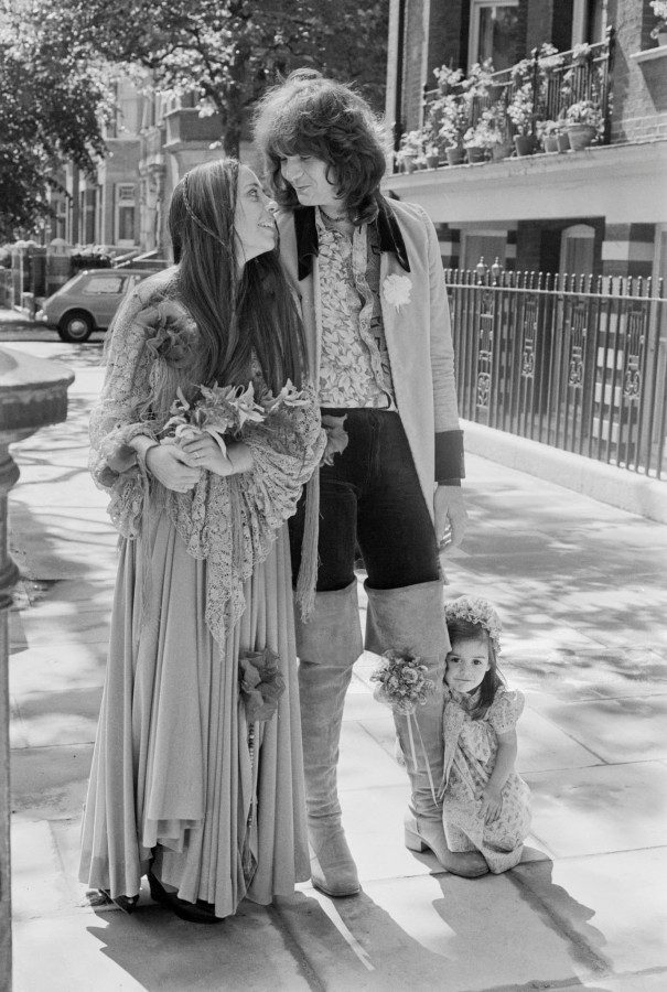 19 июня 1972 года. Крис Сквайр, бас-гитарист из группы Yes, его невеста модель Никки Джеймс и дочь Ники Кармен. Фото Jack Kay.