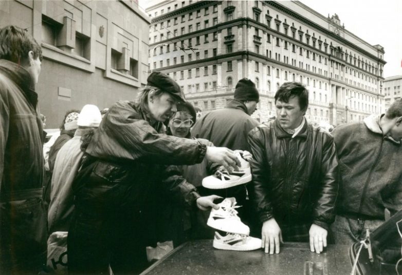 Уличная торговля заграничными кроссовками в Москве, 1992 г.