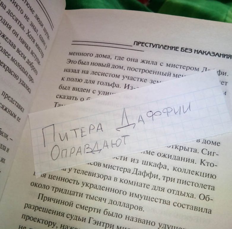 “Взяла детектив в библиотеке и практически в самом начале меня ждала эта записка”