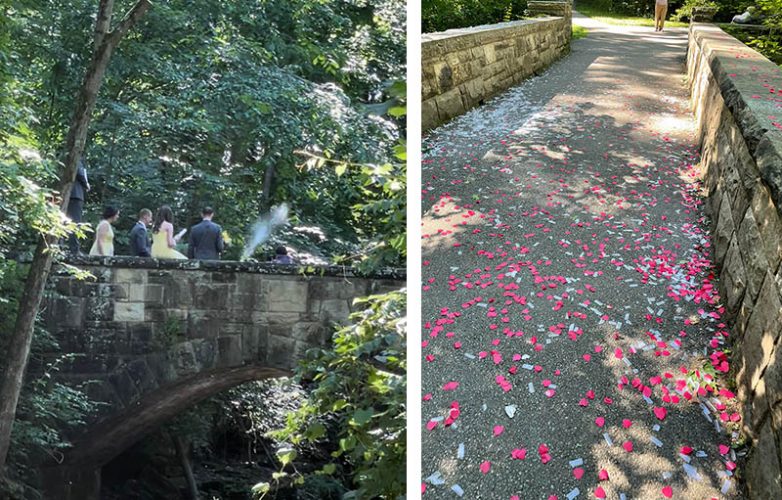 Перед входом на мостик висит большая табличка с просьбой не мусорить, но этим молодоженам все равно