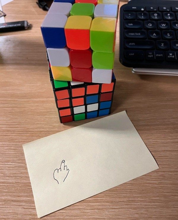 1. «Пока меня не было на рабочем месте, один мой коллега разобрал мои кубики Рубика и оставил очаровательный рисунок»