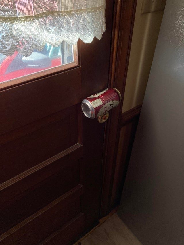 Положите пустую банку на дверную ручку, чтобы узнать, если кто-то попытается открыть дверь, пока вы находитесь не в доме. Недавно в моём районе было несколько взломов.