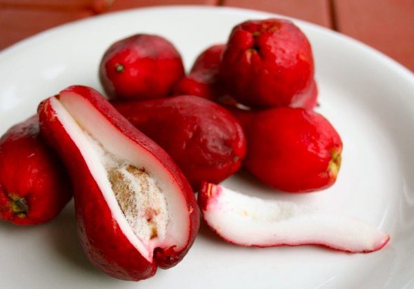 Вкус: Что-то среднее между ананасом и манго, имеет сочную хрустящую мякоть.