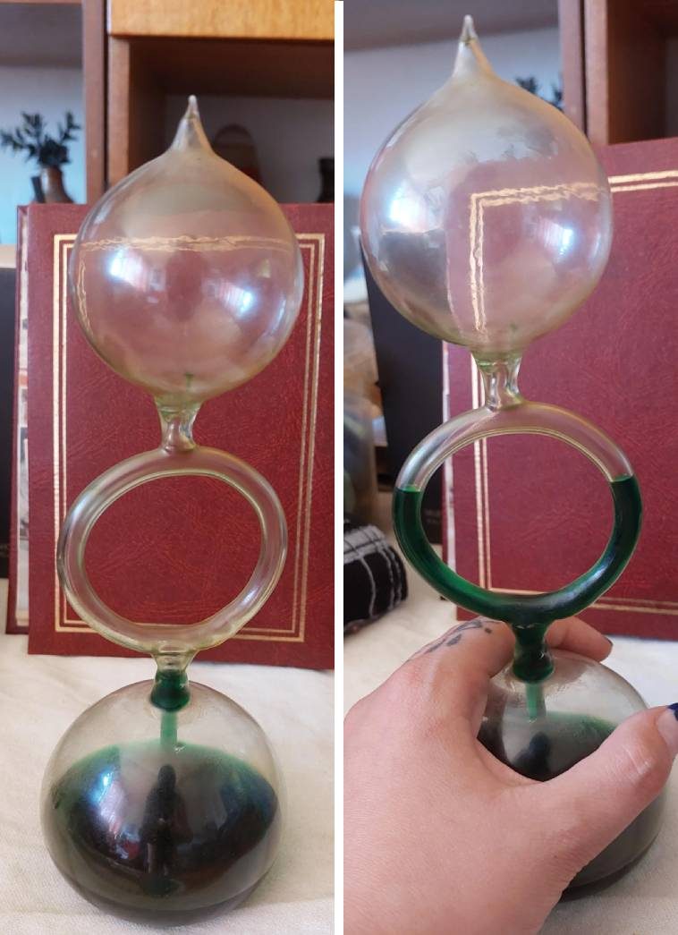 12. Что это за прибор? Если положить руку на нижнюю часть, жидкость внутри начинает подниматься.