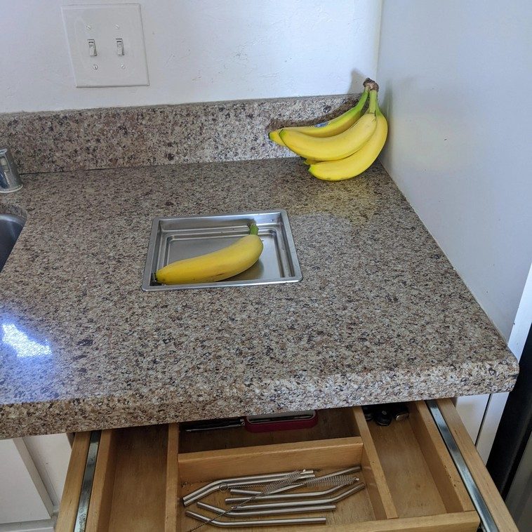 2. На кухне в квартире, которую мы арендовали через Airbnb, был небольшой поддон, встроенный прямо в столешницу. Вынуть его нельзя.