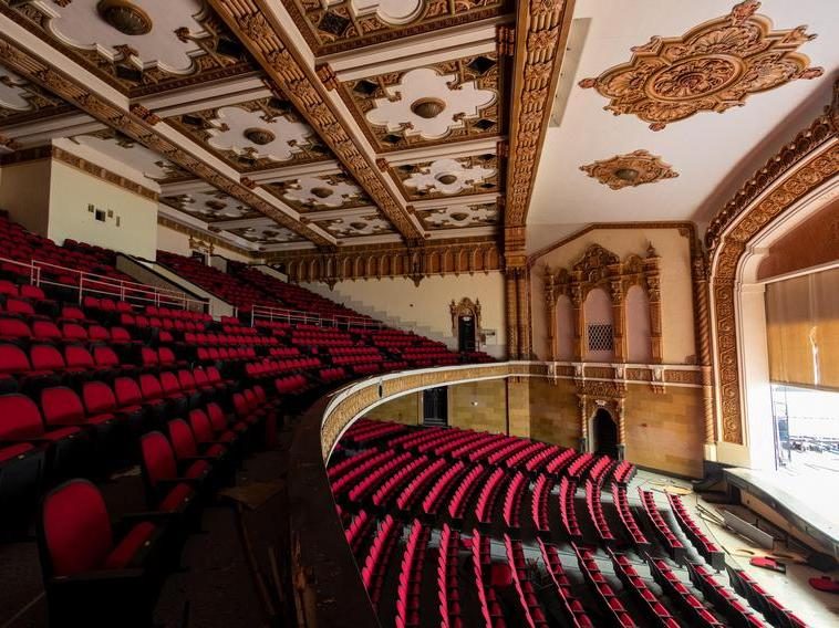 9. Актовый зал в средней школе имени Томаса Кули в Детройте. Фото сделано, когда школа не функционировала уже 7 лет, а зал соответственно все это время был заброшен. К сожалению, в 2017 году он сгорел.