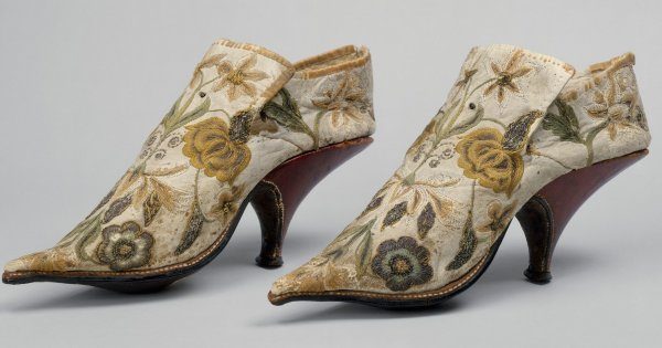 Мужская обувь из шёлка и кожи, 1690–1700 годы, Франция
