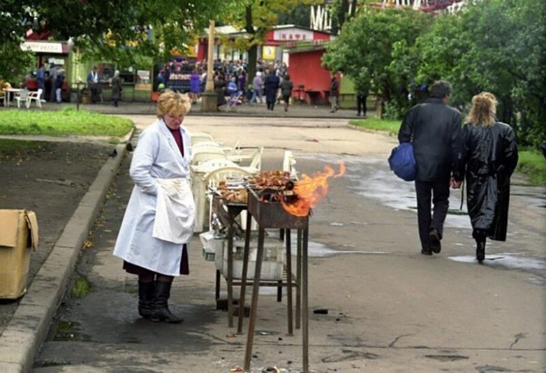 На территории ВДНХ когда-то жарили и продавали шашлык, 1993 год