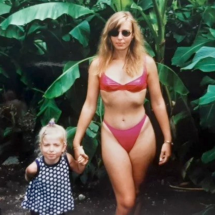 Дама с ребёнком на отдыхе в Крыму, 1990-е годы.