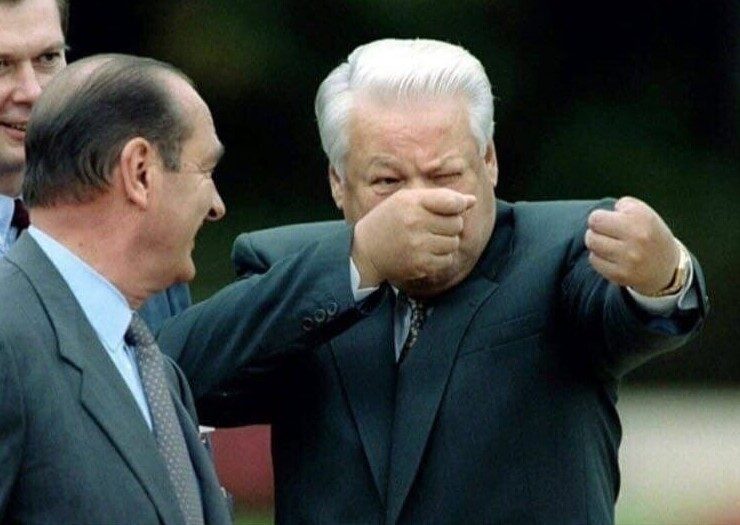 Похоже, Борис Ельцин пересказывает Жаку Шираку свою любимую байку про 38 попуг… снайперов в Первомайском