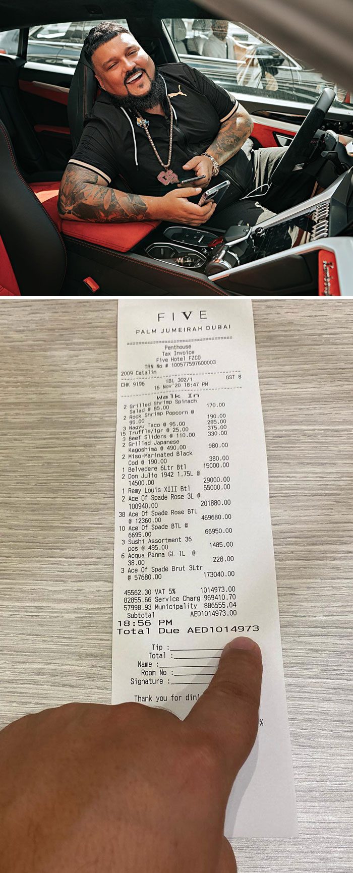 Диджей Чарли Слот потратил 272 200 долларов (≈16 670 700 руб.) в баре в Дубае и выложил фото своего чека в соцсетях