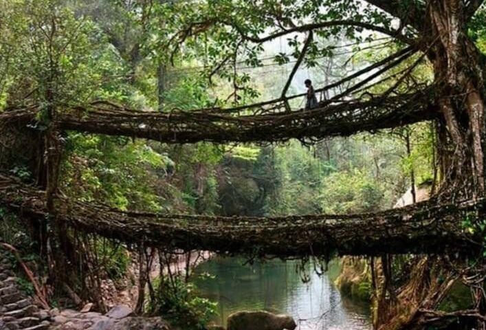 В Индии есть 500-летние мосты, сплетенные с корнями деревьев, которые со временем становятся только прочнее