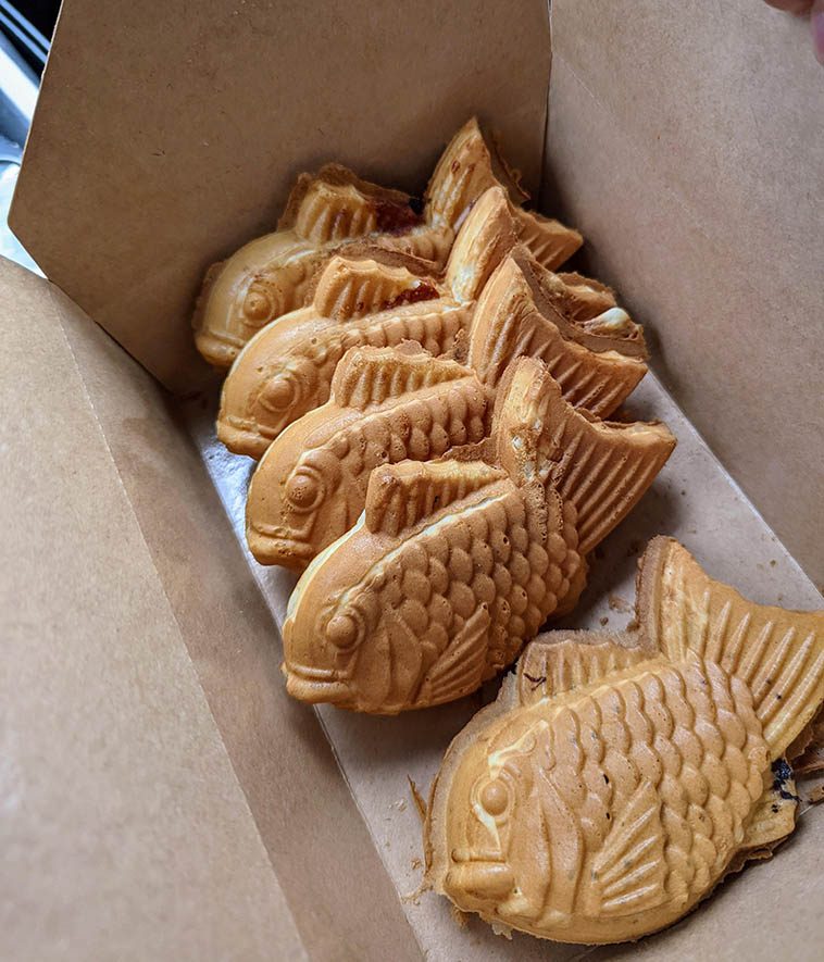 “Эти рыбки – это традиционное японское печенье тайяки. Конкретно эти с нутеллой, адзуки и сыром.”
