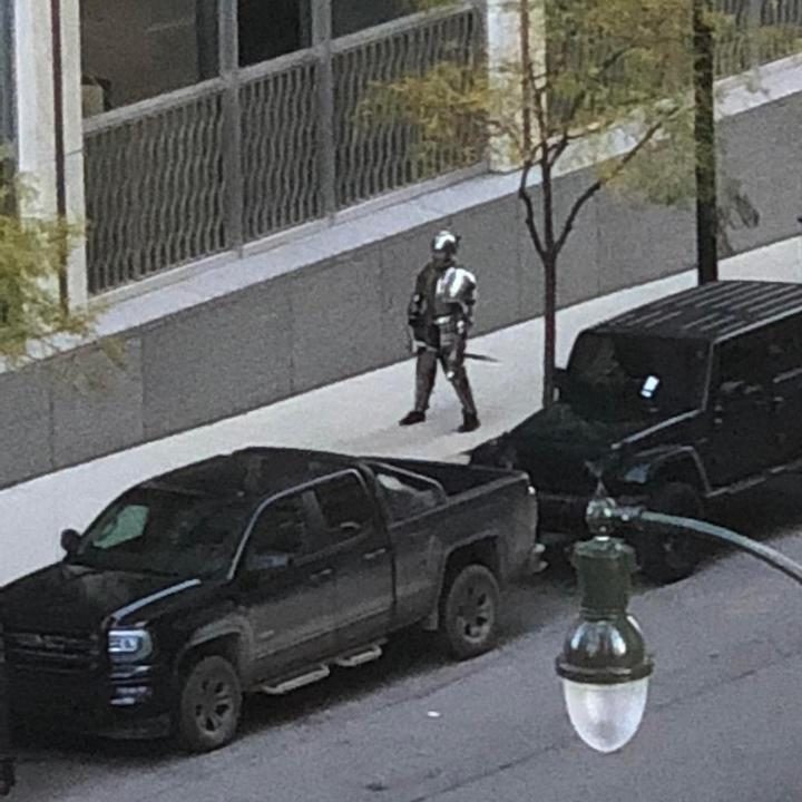 16. Сижу на работе, скучаю. А за окном, какой-то мужик разгуливает в рыцарских доспехах.