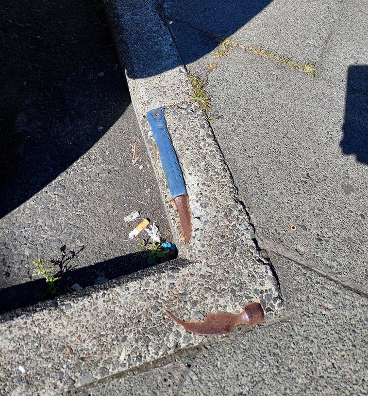 9. Молоток, который удивительным образом оказался вбитым в бетонный бордюр