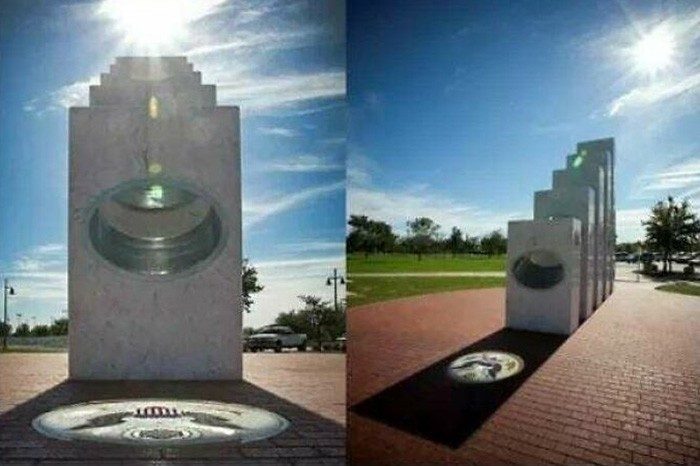 23. Один раз в год, 11 ноября (День Ветерана в США) в 11:11 по местному времени, солнце оказывается в идеальном положении, чтобы солнечный луч прошел сквозь Памятник ветеранам в Антеме в виде колон, символизирующих 5 родов войск, и осветил Большую печать США на земле