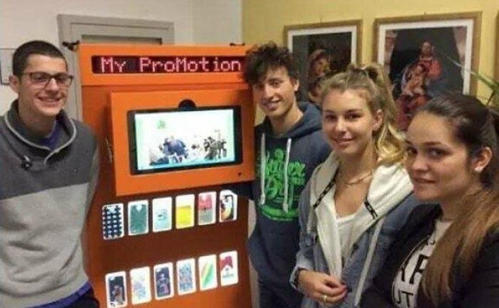 3. Сицилийские школьники изобрели вендинговый автомат, который превращает мусор в чехлы для телефона. Машина измельчает пластиковые бутылки до гранул, которые расплавляются и повторно используются 3D-принтером, который в свою очередь печатает чехлы для различных моделей телефонов, тем самым поощряя школьников сдавать мусор на переработку.