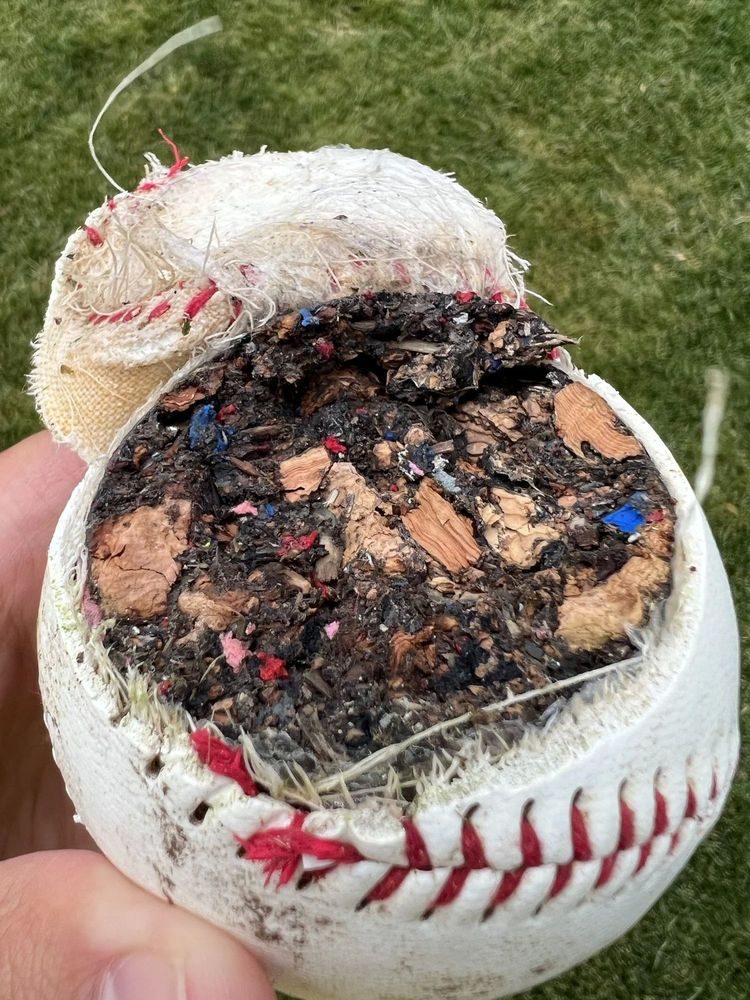 «Случайно разрезал газонокосилкой дешевый детский бейсбольный мяч и вот, что я нашёл внутри»