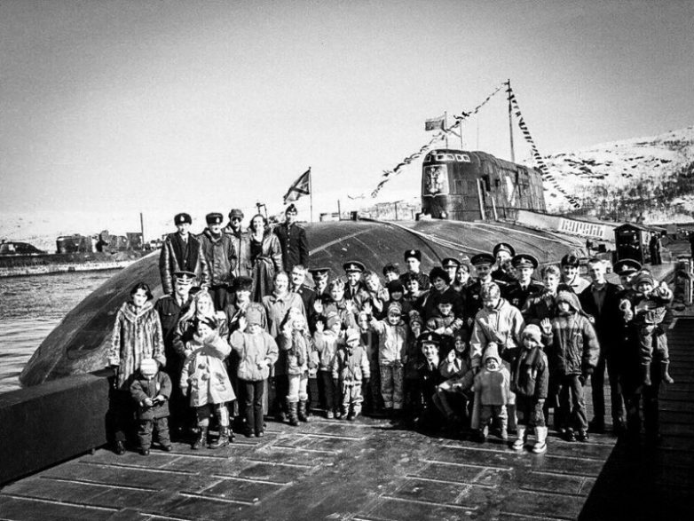 Россия. Видяево, Мурманская область, Экипаж АПЛ «Курск» с семьями. 1999 год