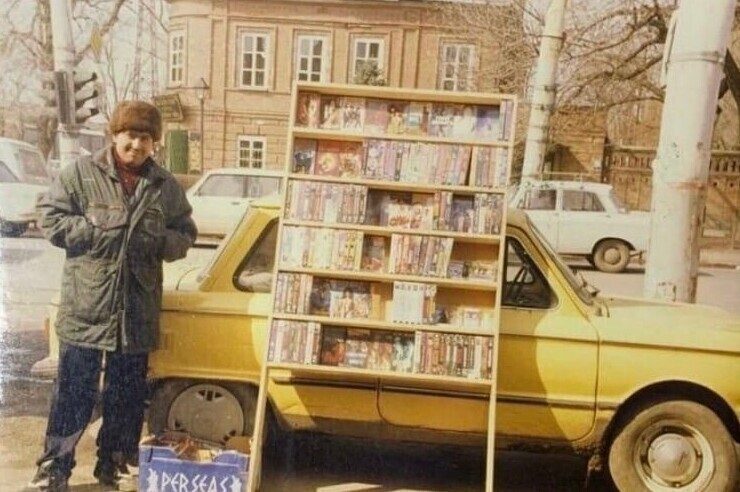 Мужчина продает фильмы на видеокассетах VHS. Таганрог, середина 90-х
