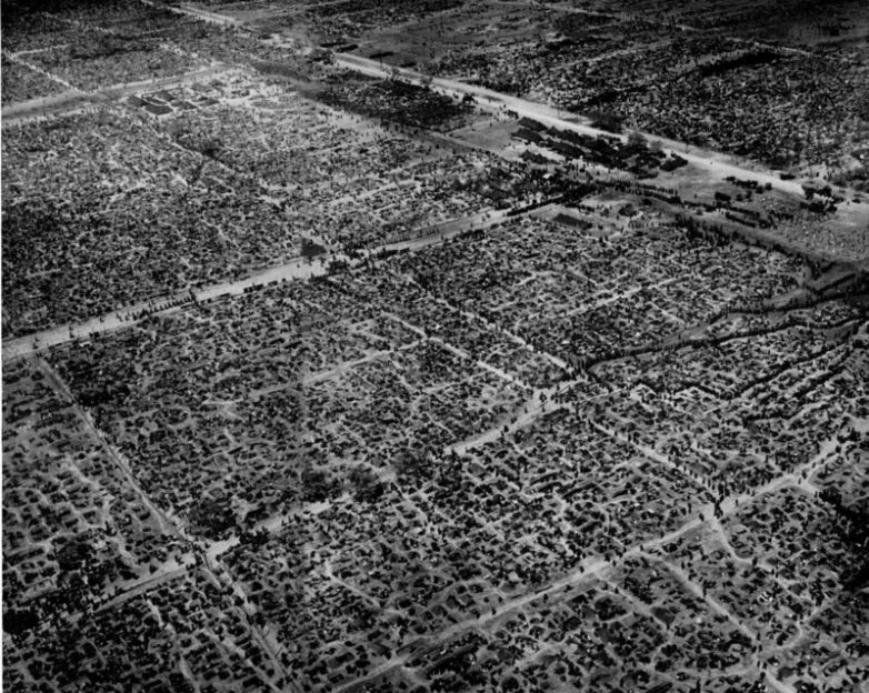 Аэрофотоснимок лагеря для немецких военнопленных на территории Германии, май 1945 года